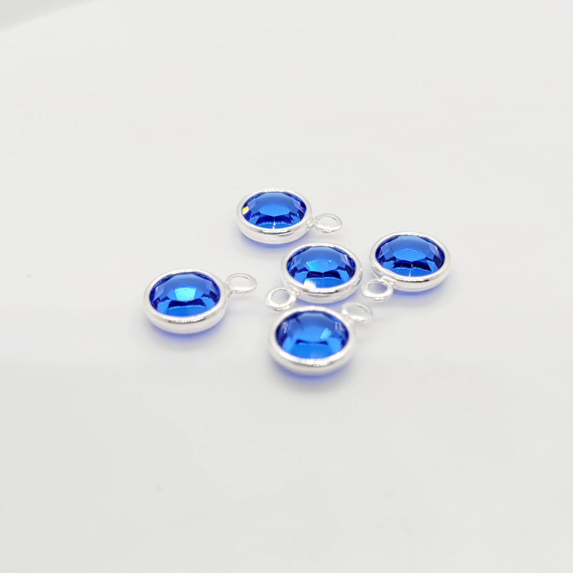 20 Pieces - OVERSTOCK 6 mm Sapphire - Silver Plated Crystal Birthstone Charm $0.90 ea